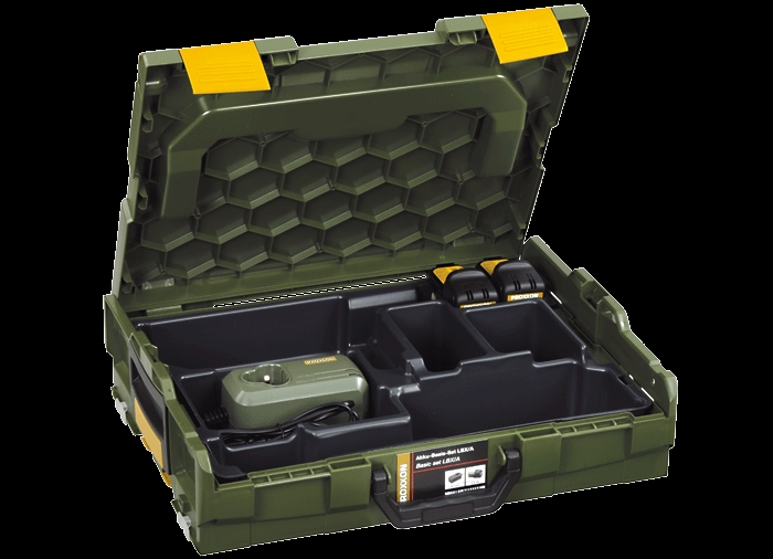 Du får en robust Proxxon L-BOXX kuffert, der samler dit akkuværktøj og tilbehør ét sted. Kufferten er designet med plads til to Proxxon akkumaskiner, så du har dit mest brugte værktøj samlet og klar til arbejde – lige ved hånden. Kufferten er en del af Proxxons LBX/A basissæt og leveres med to 10,8 V lithium-ion batterier og en hurtiglader. Du har altid strøm klar – og fuldt overblik over dit udstyr.